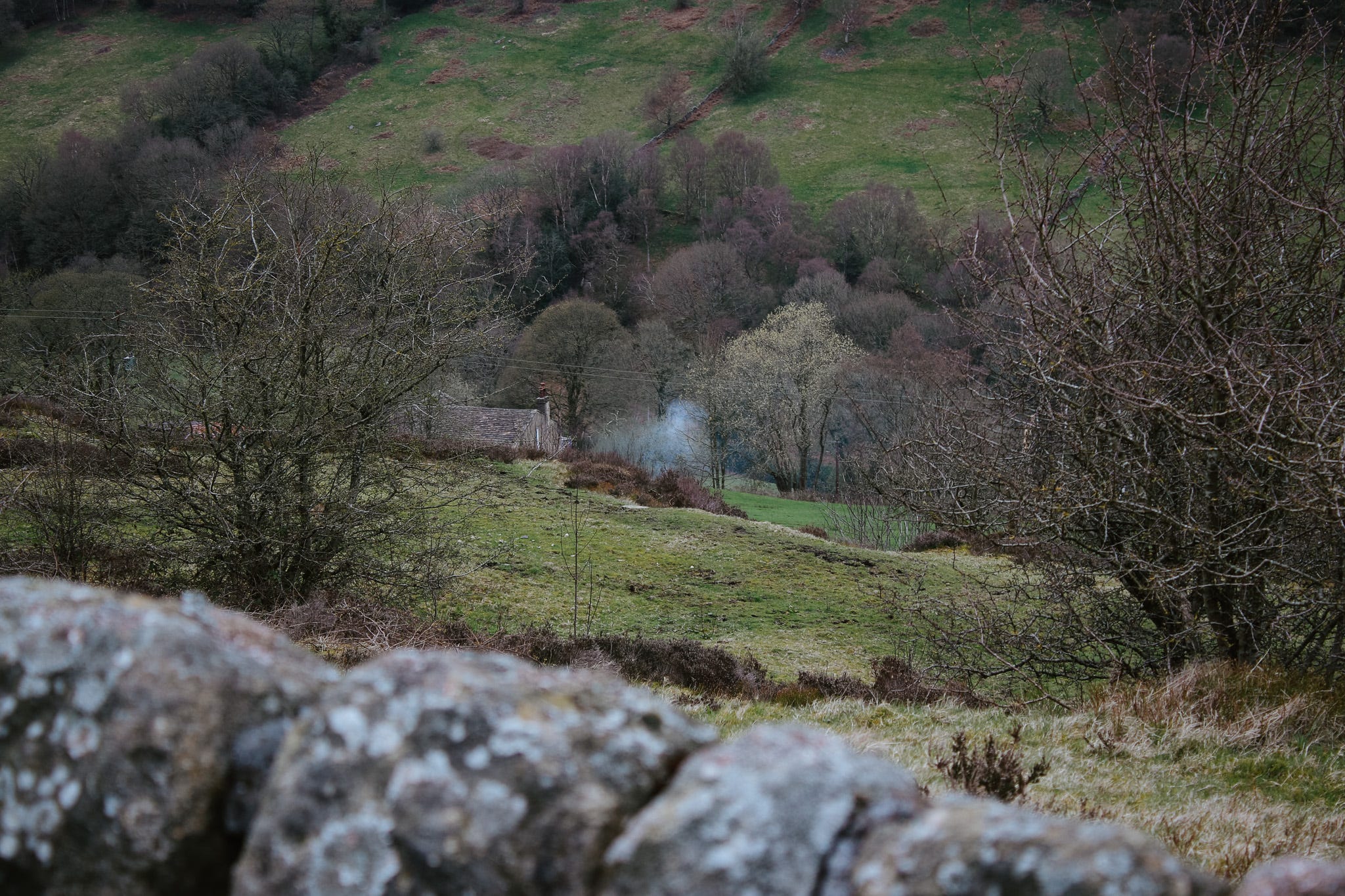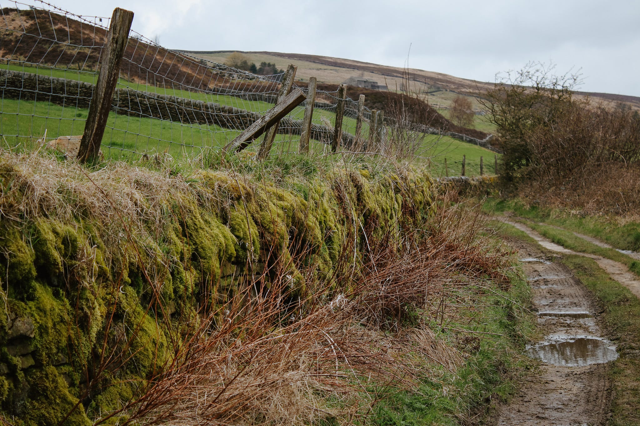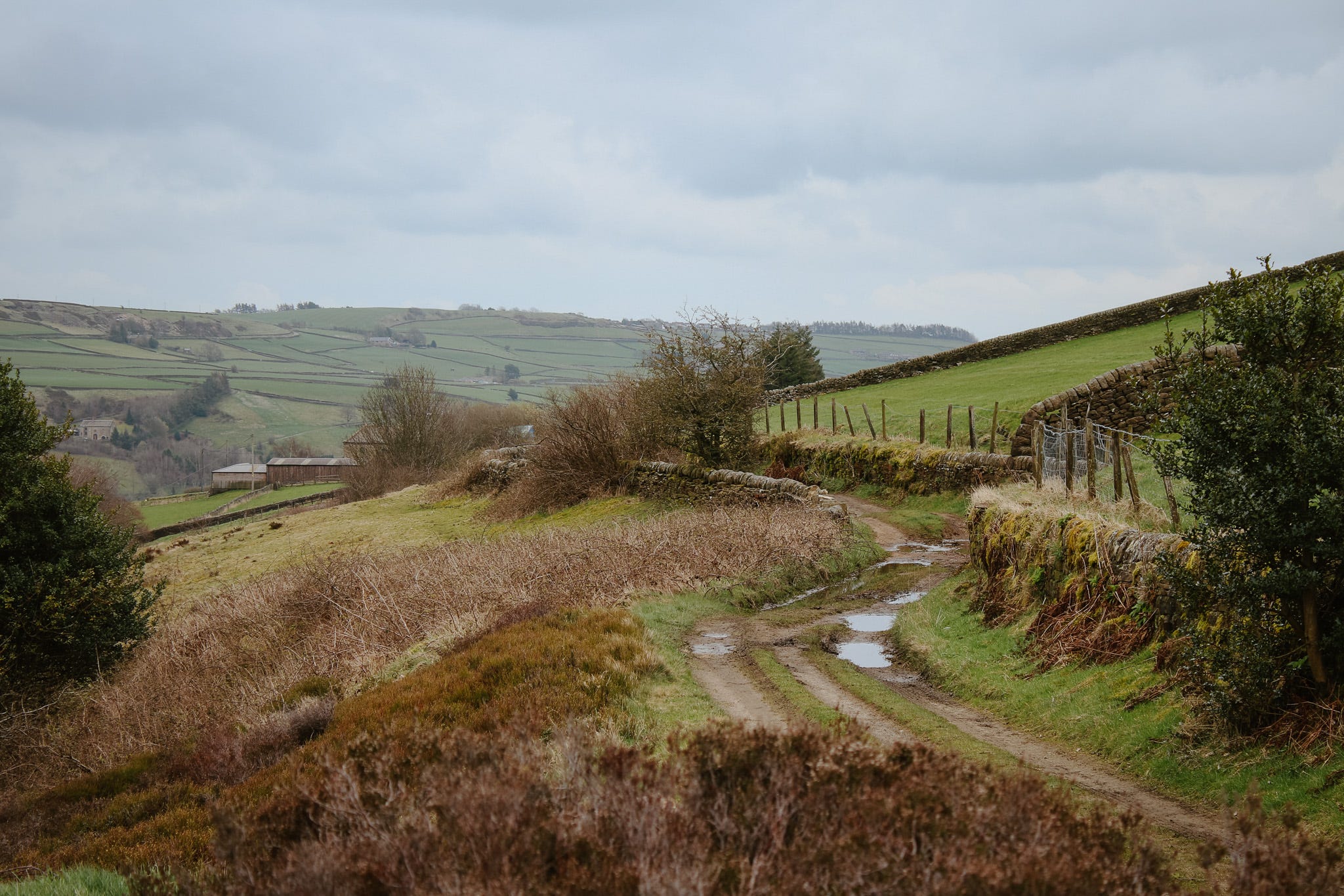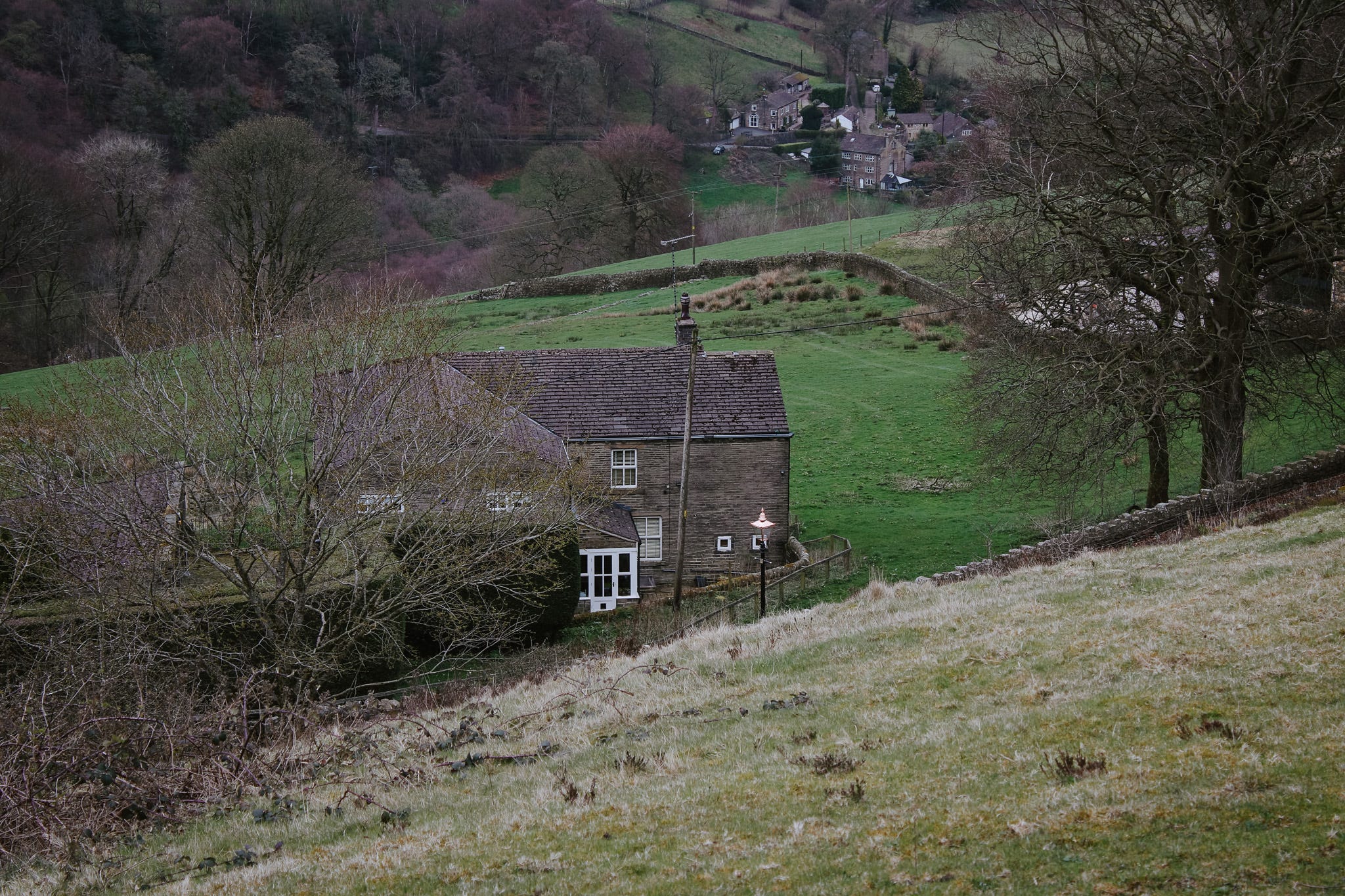 If you don’t take that downward turn, you find yourself on a footpath. That’s where I usually go. It’s quiet and open, with moors up on the left and the valley dropping to the right.