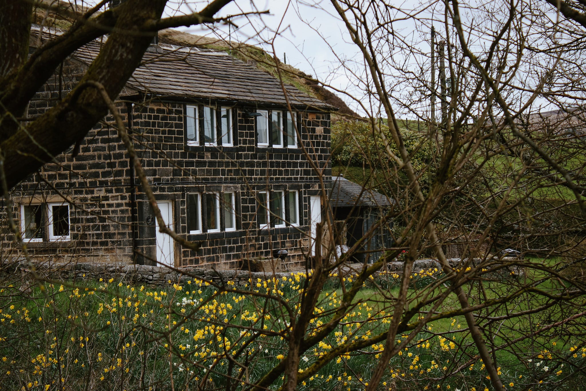 The drive - we took the back roads - took us through little clusters of houses and farms, the verges dancing with daffodils and clumps of primroses. It was wet and windy but the flowers aren’t deterred from doing their thing.