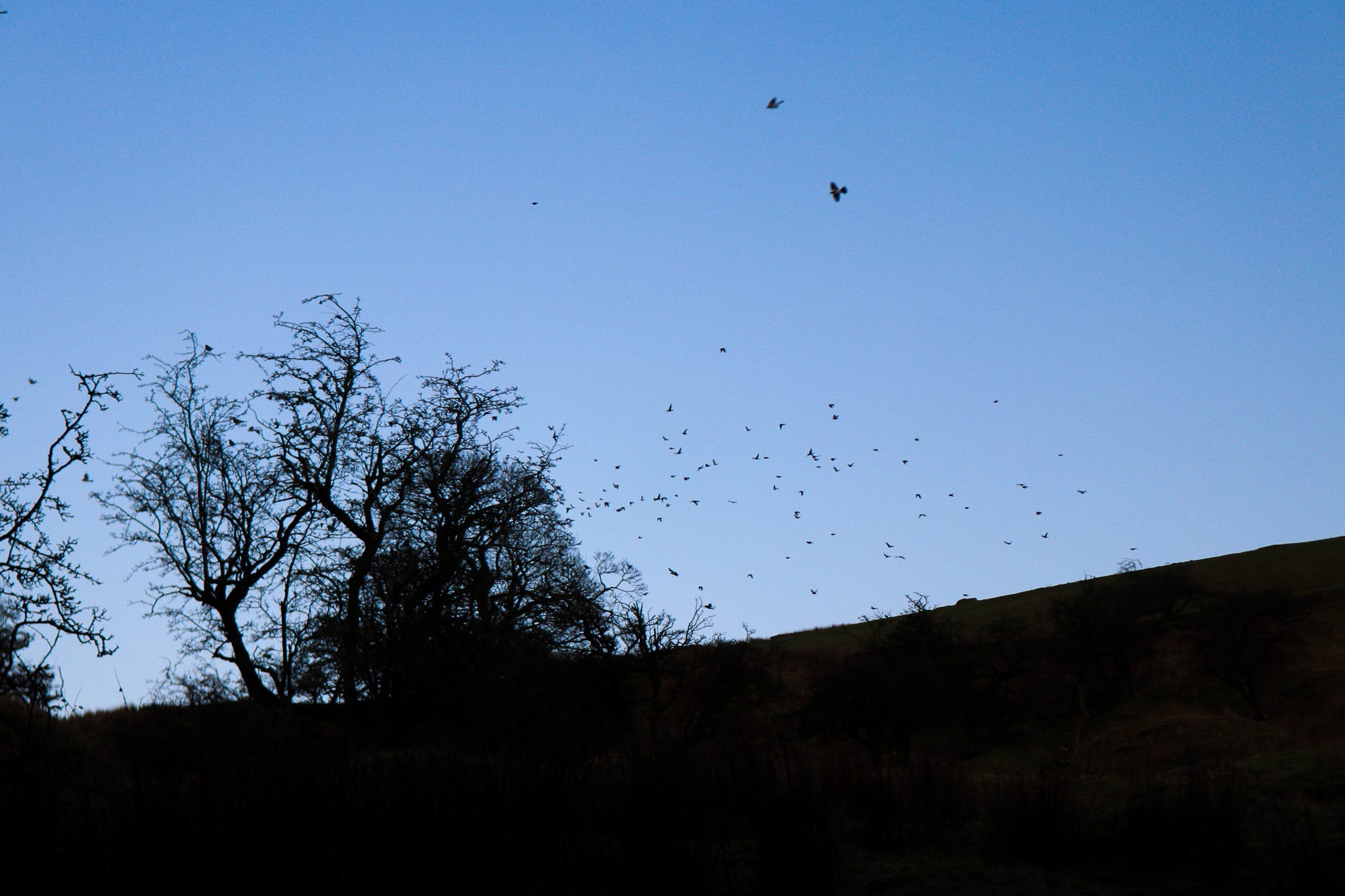 There are no owls to be seen this time around, but we do spot pheasants and flocks of birds readying themselves to roost for the night. Flocks of sheep huddle closely together along the dry stone walls.